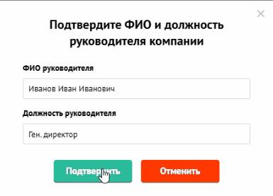 5. После выбора заказа откроется окно подтверждения данных ФИО и должности руководителя юридического лица: